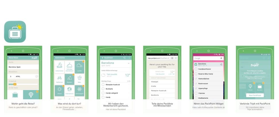 - Automatisch erstellte Packlisten, die auf Ihre Reise zugeschnitten sind