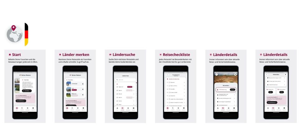 Mit der Sicher reisen App sind Sie stets gut vorbereitet, egal, wo Sie sich gerade aufhalten. Besonders bei Auslandsreisen bietet die App wertvolle Informationen über aktuelle Reisehinweise und Sicherheitshinweise, die Ihnen helfen, Risiken zu vermeiden.